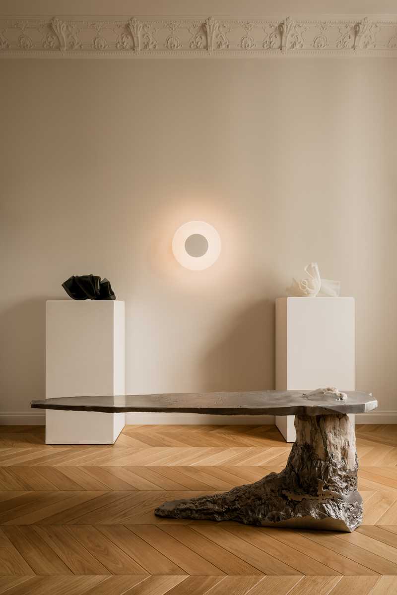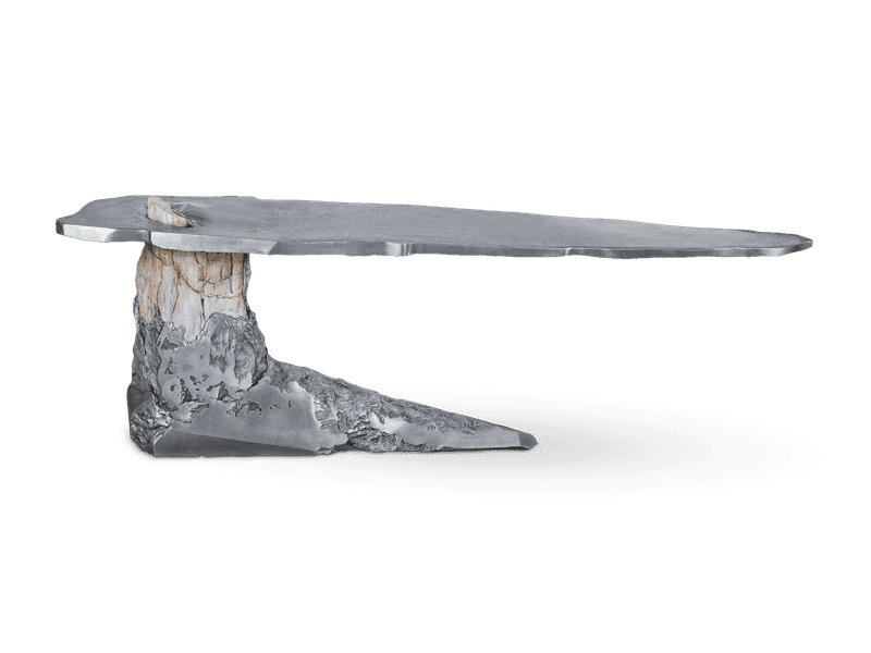 Tore is an object where the boundary between the natural and the crafted blurs. A marble monolith merges into an aluminum mass, reminiscent of rock formations shaped by nature. Only the geometric accents on the surface reveal the artist's hand. Tore tells a story of the artists' fascination with the rawness and absolute beauty of nature. The sculptural quality of Tore is evident in its intricate design and the harmonious blending of materials, creating a unique piece that stands out in any setting. This fusion of organic and geometric elements highlights the originality of the work, making it not just a sculpture, but a statement of artistic vision and craftsmanship.