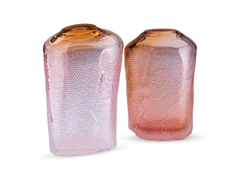 The objects from the series "Dzika barć" ("Wild beehive") refer in their structure to the forms and structures of natural, organic formations created on branches and inside trees by forest bees. Glass, especially the one formed using glassworks methods, has many features that we can easily assign to the world of nature. The moment of winding a hot portion of material from the furnace pot around the shin has always been associated by the artist with the form of honey. The colour, light reflection, optics and work of these two materials seem very close to each other. The similarity can be seen not only in visual values, but also in the production process itself, in which the fundamental feature is unity, the vision of a common goal and the ability to work in a group. In the case of bees, it will be the moment of collecting and storing nectar. During the creation of a glass object - mutual observation and cooperation of the glassworks team. However, all this comes down to a situation in which we become "consciously present". After all, we are not lonely individuals existing in a vacuum. We are part of a larger whole, and nature constantly reminds us of this in a simple way. The "Dzika barć" series is a component of the cycle "OD-NOWA". In this project, the artist focuses on the subject of climate change and destruction that happening due to the expansive activity of man on the natural environment. What connects each of the forms is the element of fire. The structures and organic forms reflected on the surface of the glass are a documentation of what was inevitably destroyed in its flames, while at the same time opening up space to new things. On the one hand, presenting fire as destructive, and on the other, as creating nature.