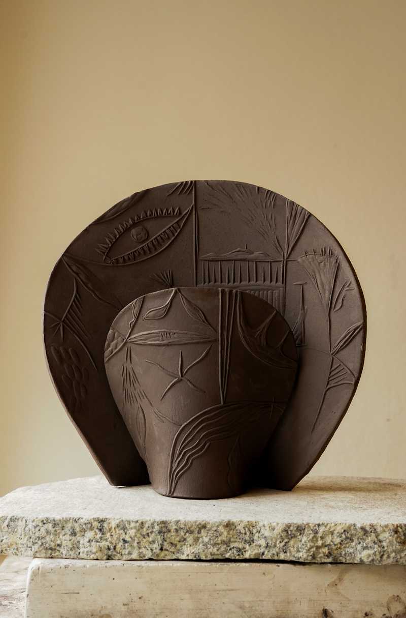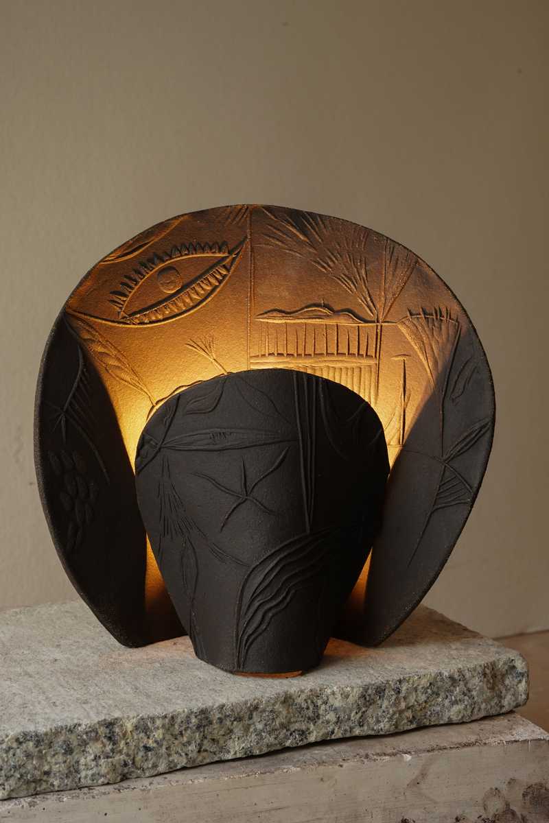 Each lamp is hand-sculpted using various types of clay and then individually fired, resulting in subtle variations that make each piece unique. Some of the lamps are glaze-finished, while other are left in their raw, natural form, enhancing the texture and look of the used material. The lamps are decorated with embossed reliefs, created by pressing a hand-carved chisel-cut matrix into the surface. Lueur is a tribute to nature – a fusion of the brutalist simplicity of sculpted, fired clay with romantic decor. Every stage of the lamp’s creation is entirely handcrafted, reflecting a meticulous, craft-driven approach.
