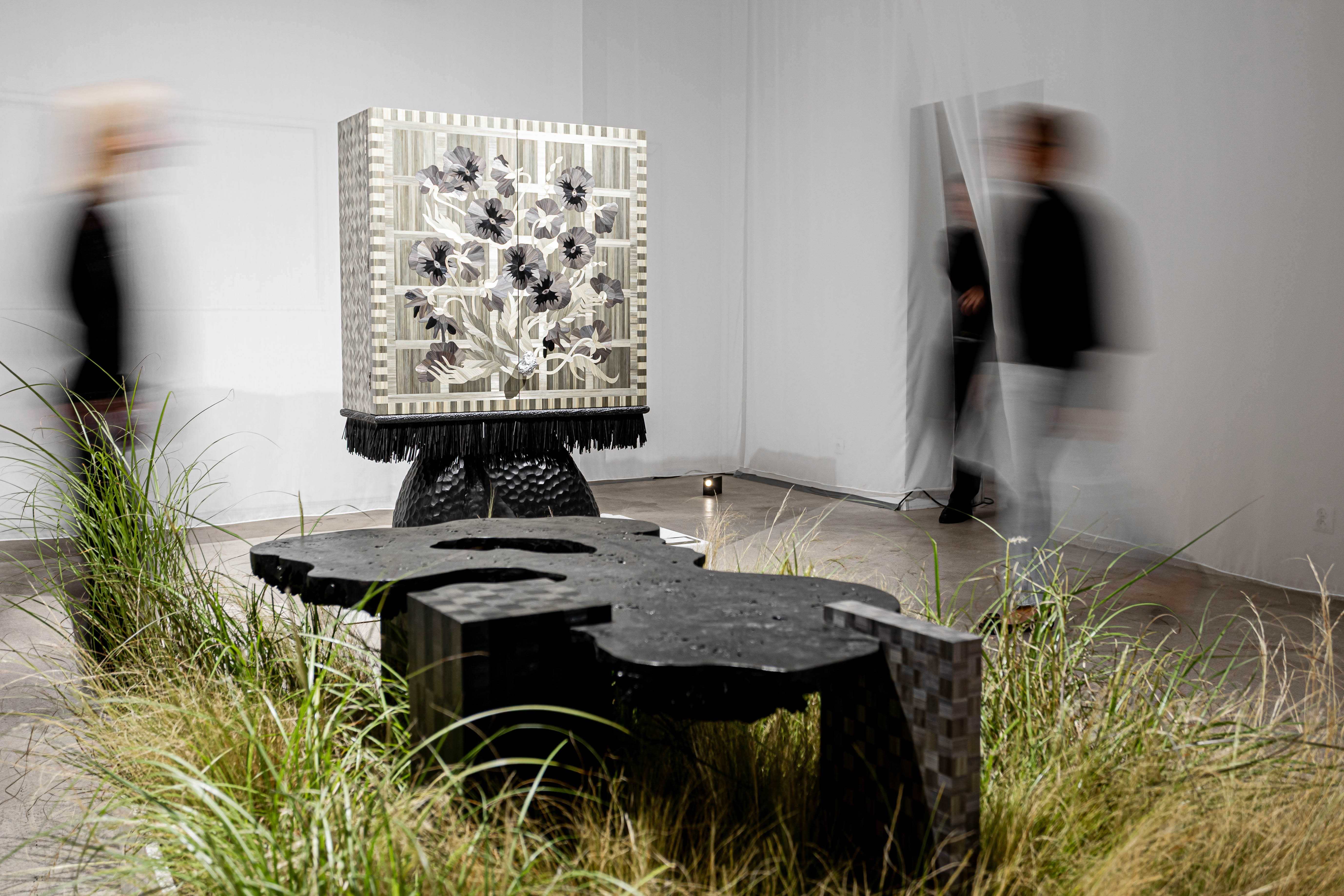 Contrast is a preoccupation that has defined a large part of her career, balancing her training in contemporary design technologies at university with an apprenticeship in straw marquetry at the Ateliers Lison de Canes, successor to noted French Art Deco-era master André Groult. Juxstaposition, in both material and technique, is something that she continues to harness as a way of articulating deeper meaning and communicating relatable narratives. Sobolewska Ursic achieves plausibility by anchoring and distilling these explorations in decipherable forms: recognizable furnishings and objects.